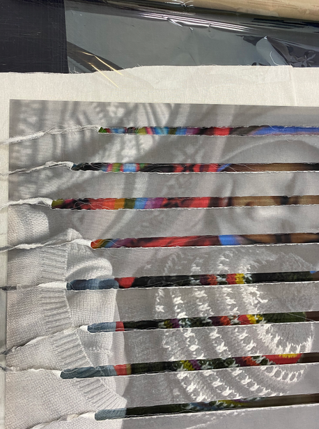 Trabajo de sobreposición de fotografía a color y en blanco y negro. Con intervención en rasgado de tela para mostrar la segunda imagen.
